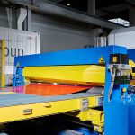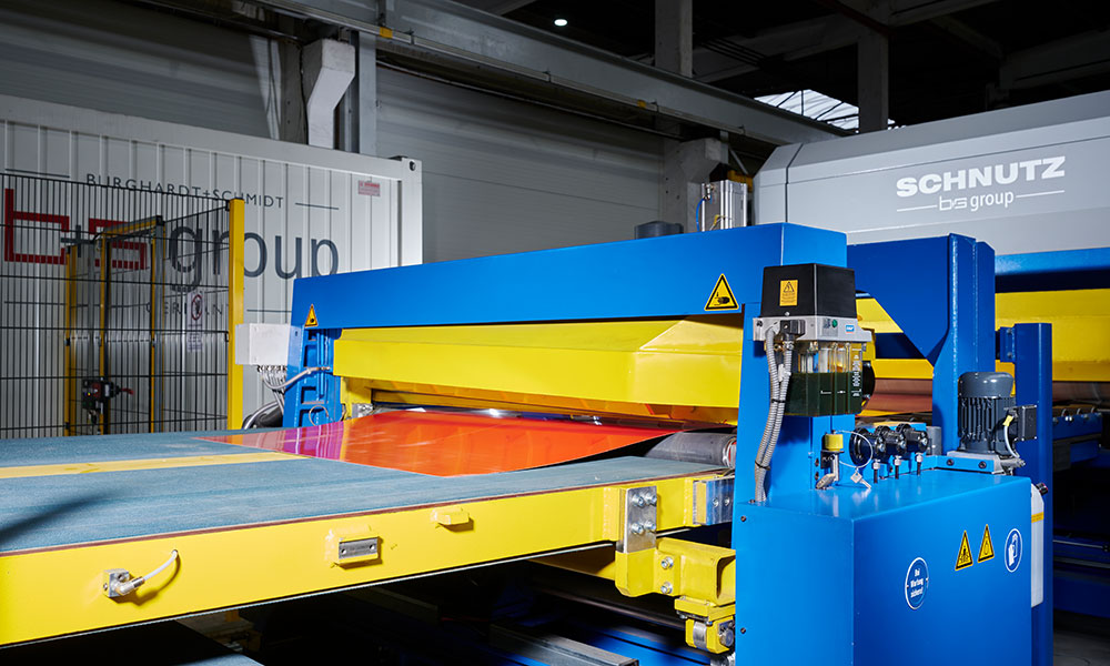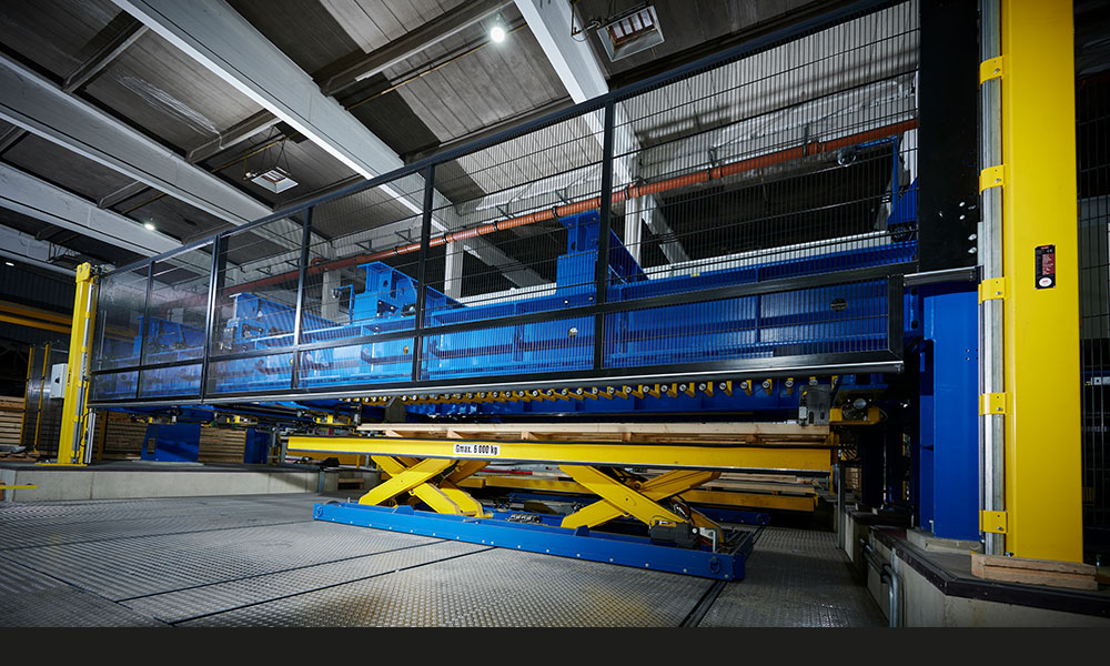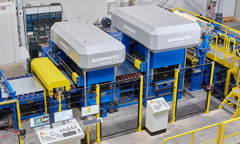 Im Gegensatz zu einer Bandzuführanlage umfasst eine Querteilanlage zusätzlich eine Querteilschere und die Stapelvorrichtung für die Blechtafeln.